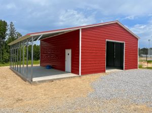 A Frame Vertical Roof, 14ft Leg Height, (1) 12’x12’ Garage Door, (1) Man Door, 12×40 Lean To, 14ft to 11ft Leg Height